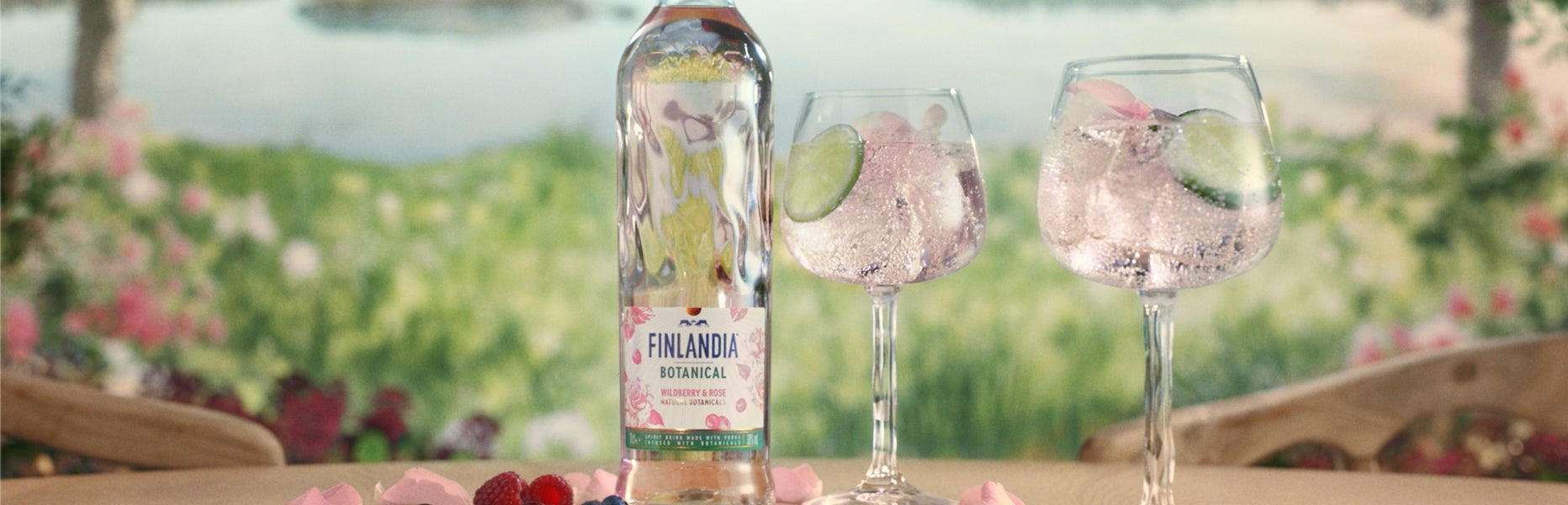Налей шот Finlandia Botanical Wildberry & Rose и розов тоник.