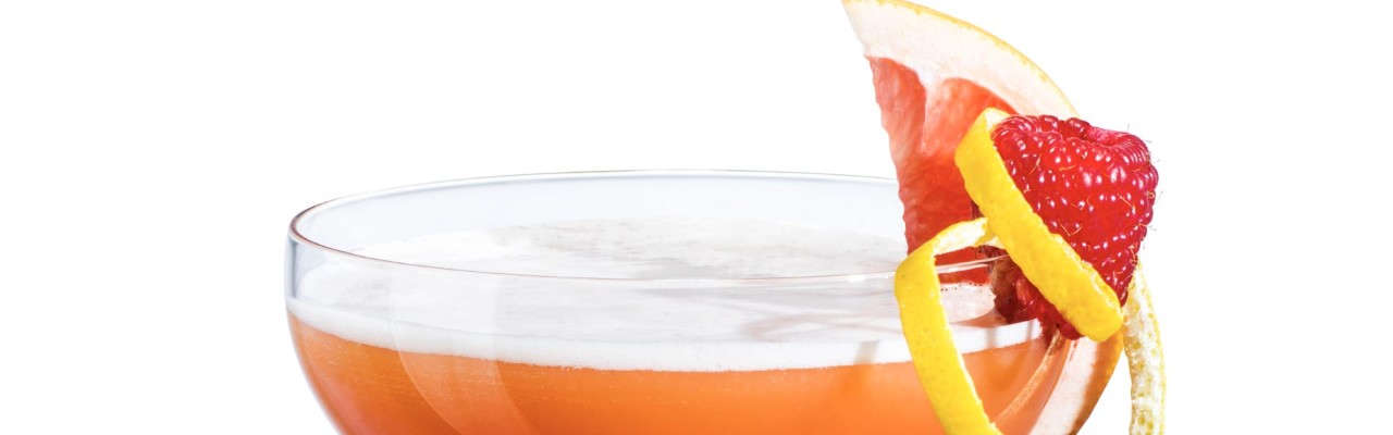GARNISH WITH RASPBERRY AND GRAPEFRUIT TWIST