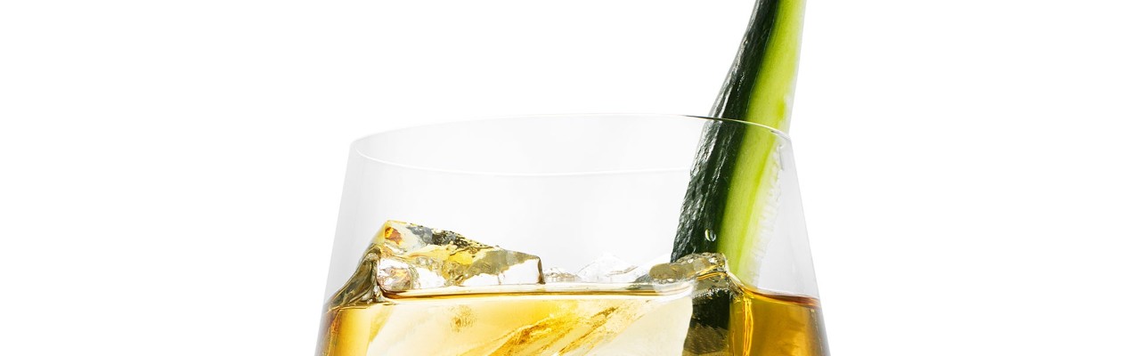garnish with a slice of cucumber.