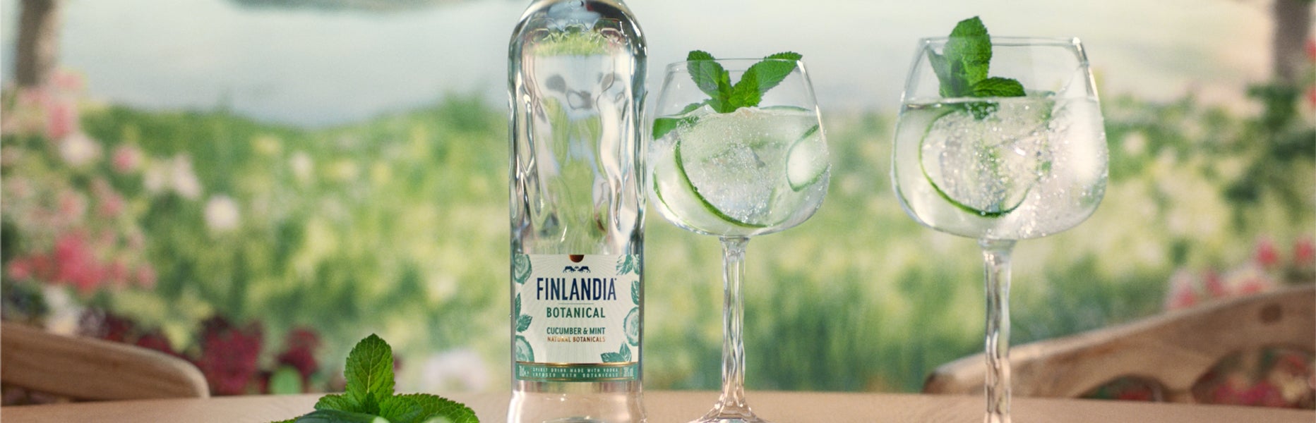 Pour shot of Finlandia Botanical Cucumber & Mint and tonic water to the glass