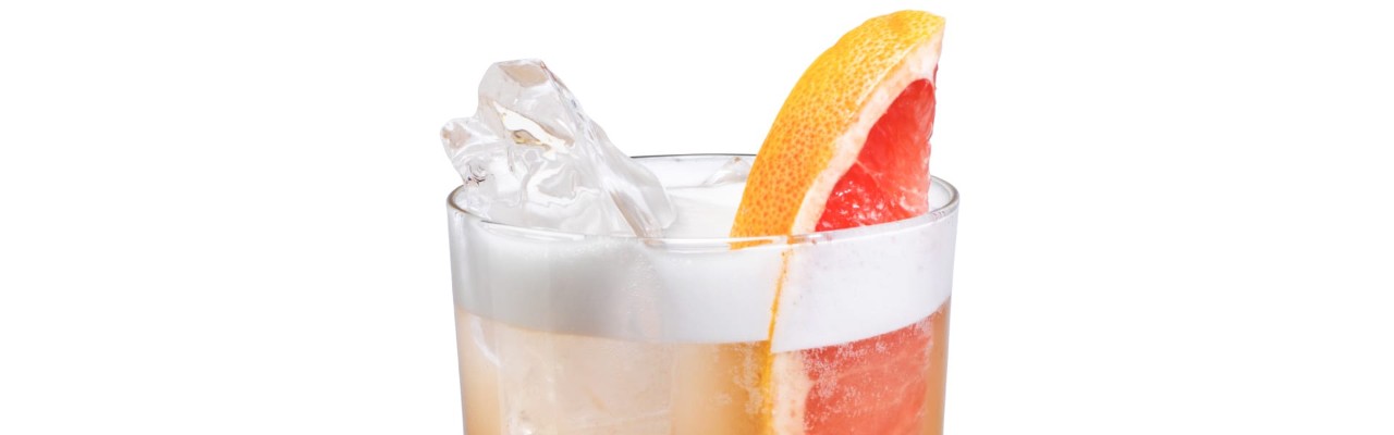 DOPEŁNIAMY WODĄ GAZOWANĄ, PONOWNIE MIESZAMY, A NA KONIEC OZDABIAMY CZĄSTKĄ RÓŻOWEGO GREJPFRUTA