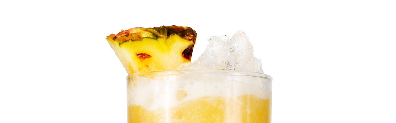 wlej do wypełnionej lodem wysokiej szklanki i dodaj odrobinę lemoniady limonkowej oraz cząstkę ananasa do dekoracji.