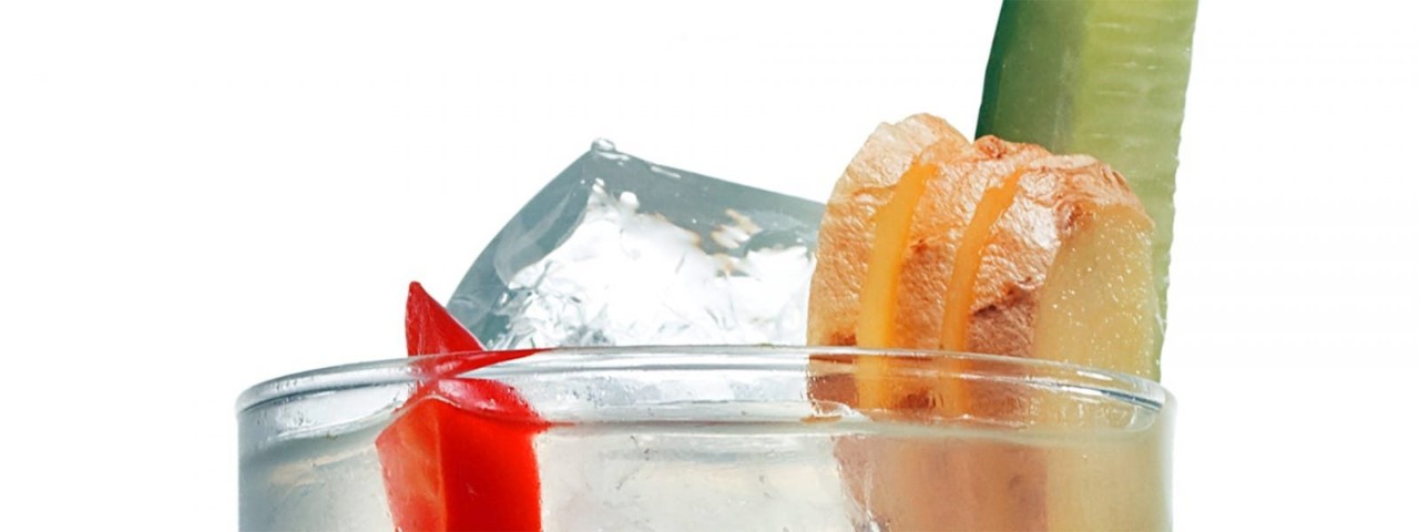 LA FINAL, ADAUGA VODCA, O FELIE DE LIME SI O FELIE DE ARDEI IUTE PENTRU DECOR